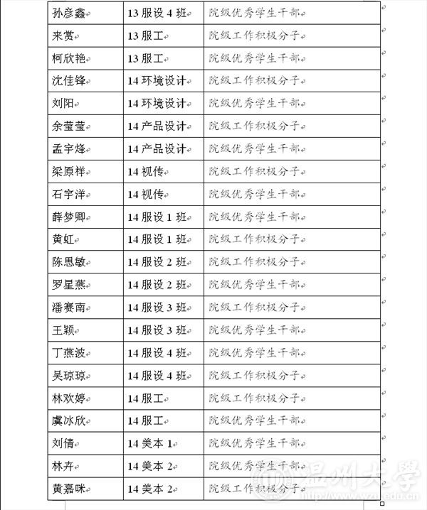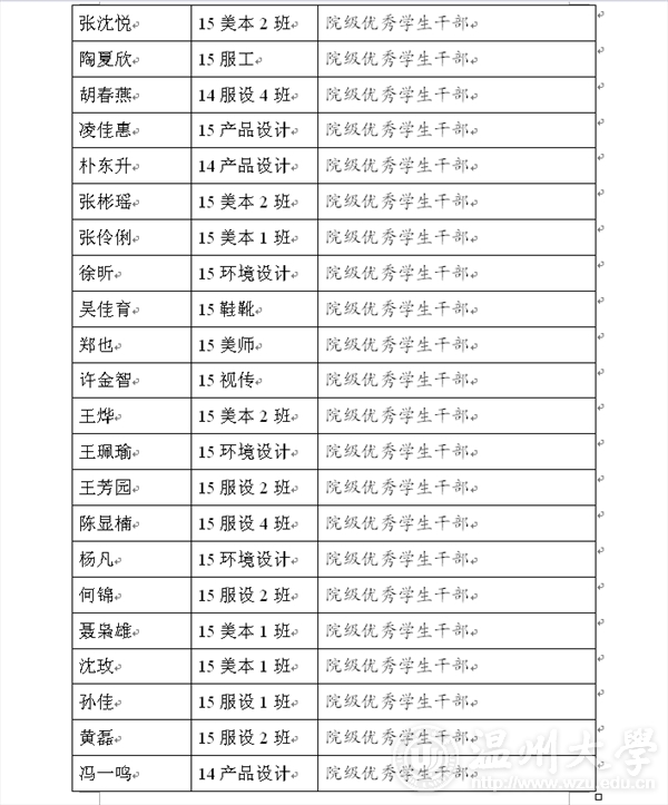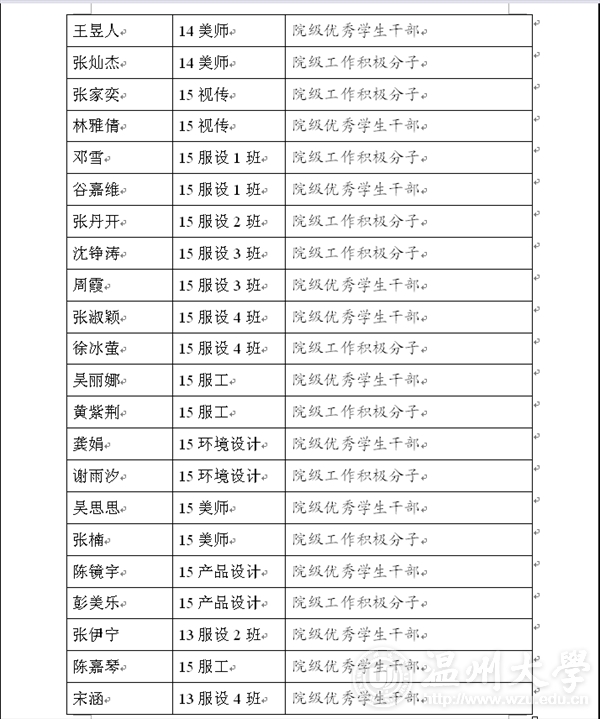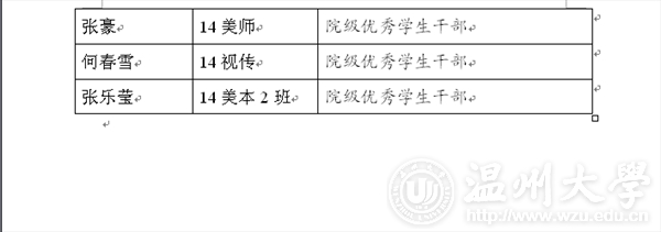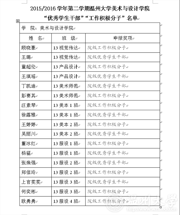 现将2015-2016学年第二学期成人网站 “优秀学生干部”“工作积极分子”名单公示如下,如对评选结果有异议,请及时联系美术学院学生科。