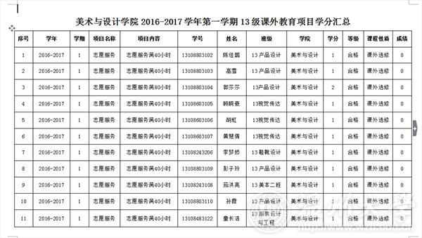 现将成人网站 2016-2017学年第一学期13级志愿者学分申请名单公示如下,还需要补申请的同学请加入qq群:328240294,进群下载“学分申请表”填写电子版,于本周日下午5点 前发至 [email protected]邮箱。时间满40/80小时可申请1个/2个学分。如有问题请联系何同学:15258031198。