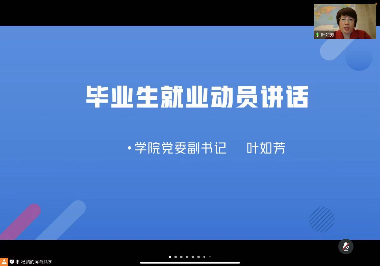 2022年2月18日晚,成人网站 2022届全体本研毕业生就业动员大会通过腾讯会议召开,学院党委副书记叶如芳,学工办主任杨鹏,学生党建指导老师王颖以及团学指导老师石建林出席了本次大会,2022届全体本研各班级学生参加。