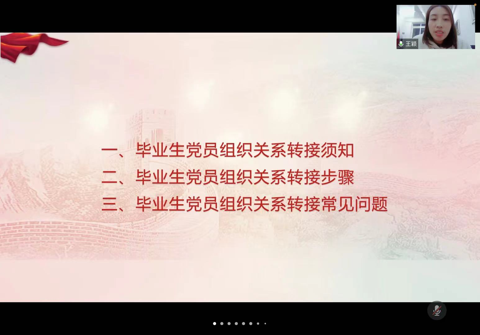 紧接着是学院党建指导老师、辅导员王颖对毕业生党员以及积极分子组织关系转接进行了详细介绍,对不同情况的毕业生同学,如工作或升学都一一解答了毕业生党员以及积极分子心中的疑惑。